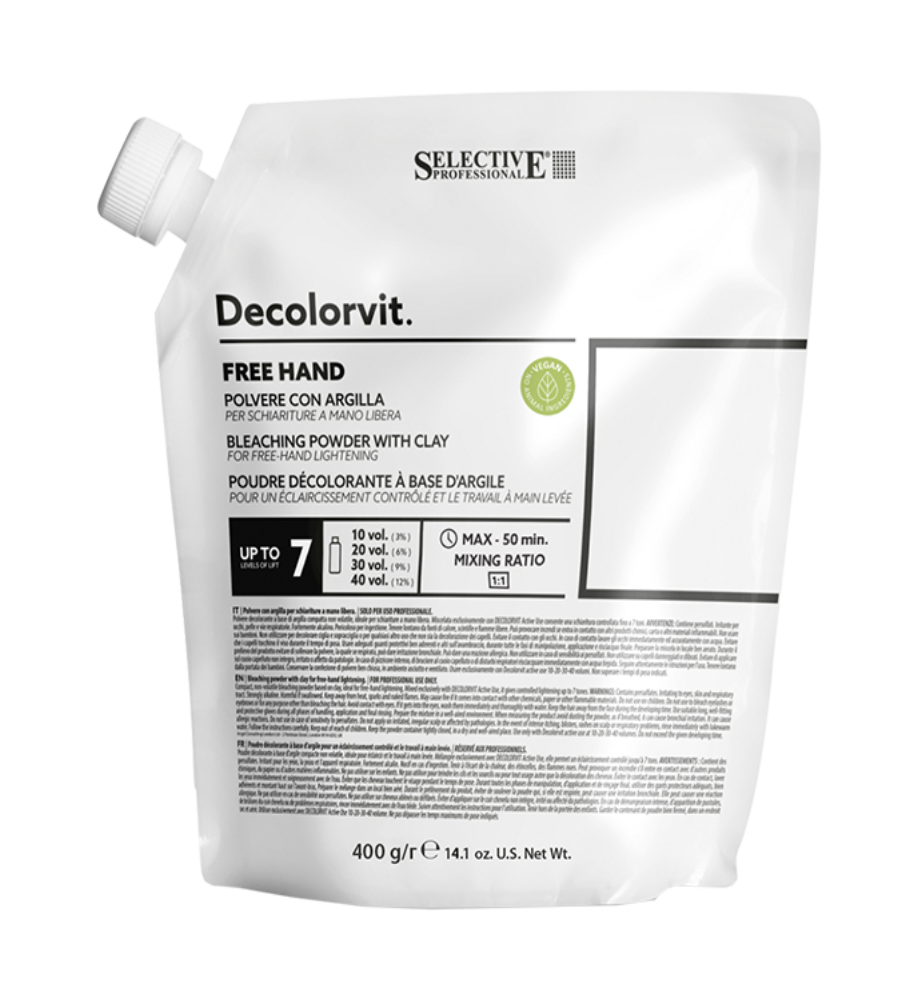 蘊含瓜爾膠和黏土,吸水性極佳,賦予其白堊質感,帶來極致彈性和持久附著力。不留條紋,不乾燥,無需使用錫箔紙即可漂發;包裹髮絲結構,保持秀發彈性,並保持柔順。