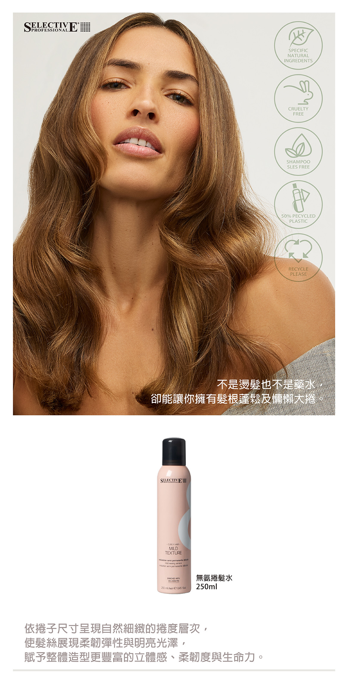 依捲子的不同產生自然且細緻的捲度,頭髮展現新的造型感、柔韌度、明亮感和生命力。